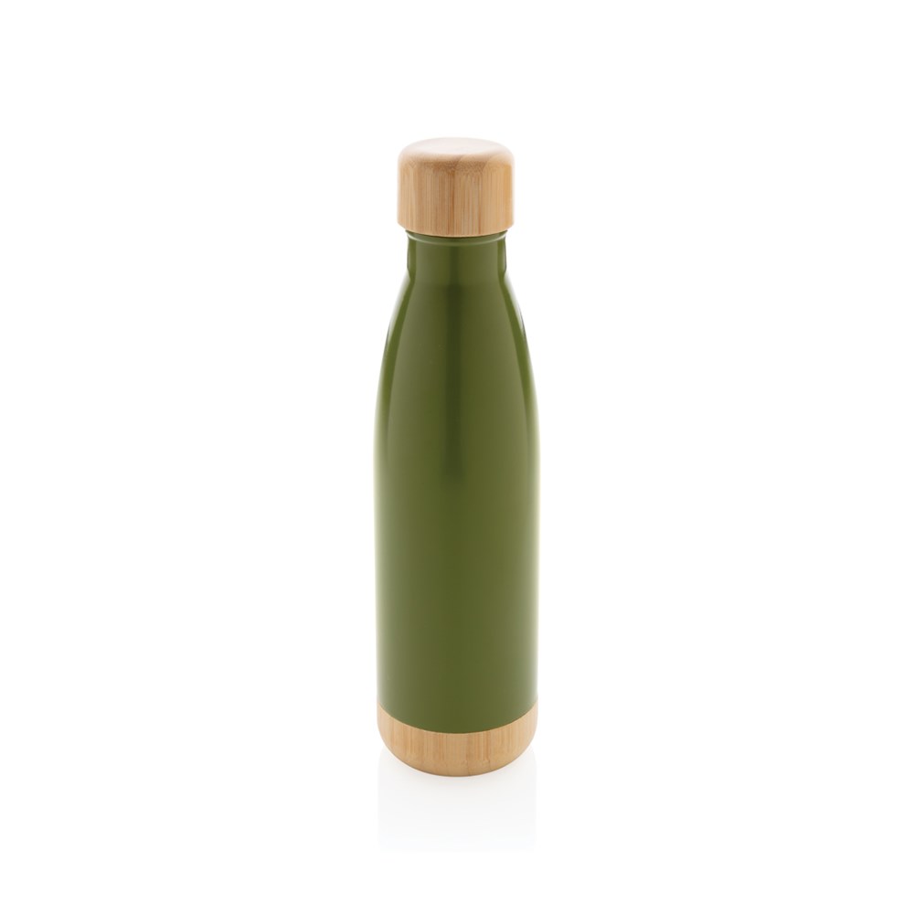 Vakuum Edelstahlfasche mit Deckel und Boden aus Bambus