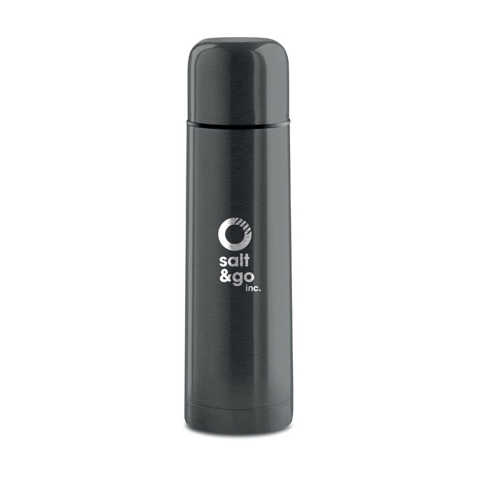 Doppelwandige Isolierkanne aus Edelstahl. Füllmenge: 500 ml. Auslaufsicher.