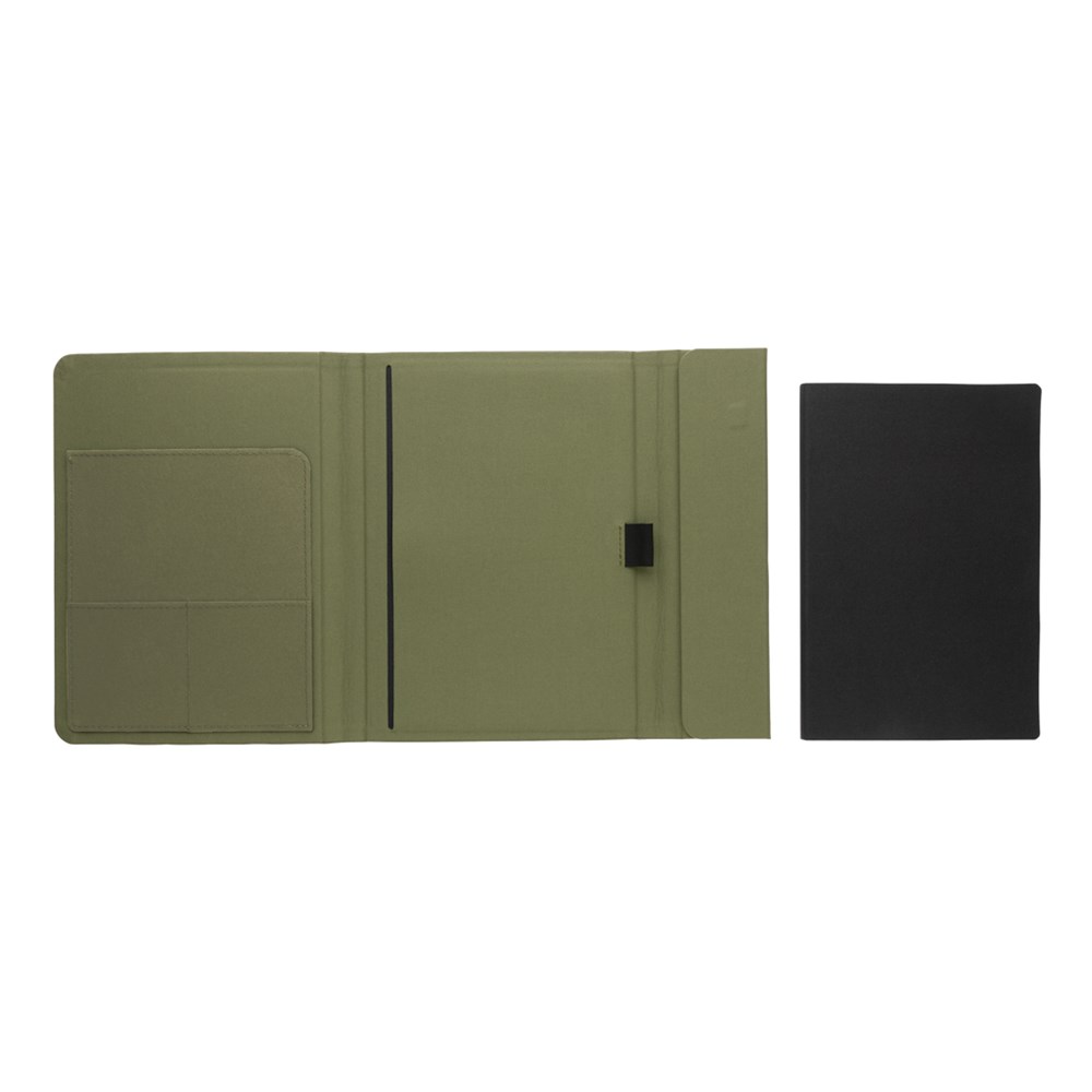Halten Sie all Ihre Arbeitsutensilien in diesem schönen A5 Aware™ RPET-Portfolio organisiert. Im Portfolio finden Sie ein passendes Notizbuch. Das Notizbuch enthält 64 Blatt/128 Blatt cremefarbenes, liniertes 80gr/m2-Papier. Im Inneren finden Sie 1 großes Fach, 2 Kartenfächer sowie eine Stiftschlaufe. Magnetverschluss. Mit AWARE™ Tracer, der die tatsächliche Verwendung von recycelten Materialien validiert. Weiterhin werden 2% des Erlöses jedes verkauften Impact-Produkts an Water.org gespendet PVC-frei.