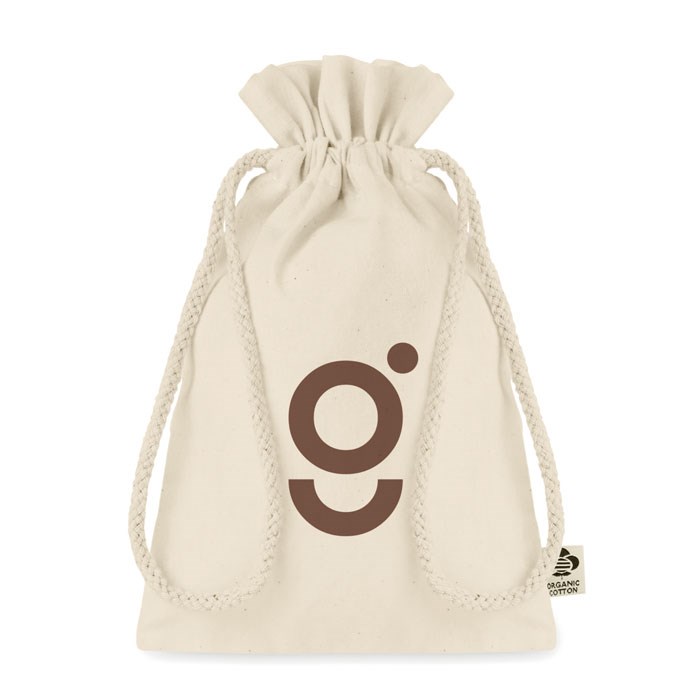 Kleiner Beutel mit Kordelzug. Organic Cotton. 105 g/m². Maße: 14 x 22 cm.