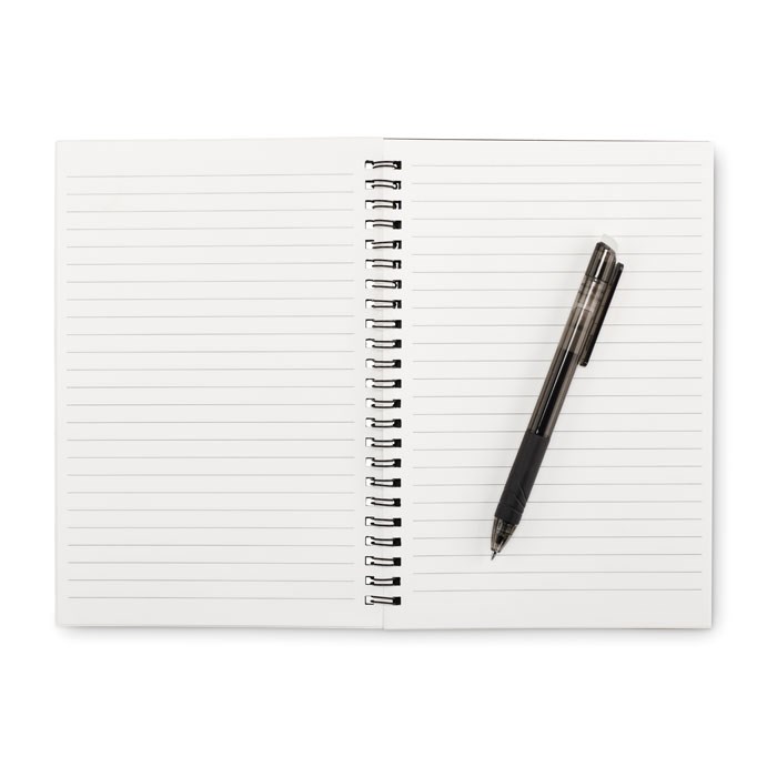 DIN A5 wiederverwendbares Notizbuch mit Cover aus PP. 18 Blatt (36 Seiten) liniertes MineralPapier. Kompatibel mit jeder App zum Scannen von Dokumenten. Inkl. wasserlöslichem Stift und Reinigungstuch.