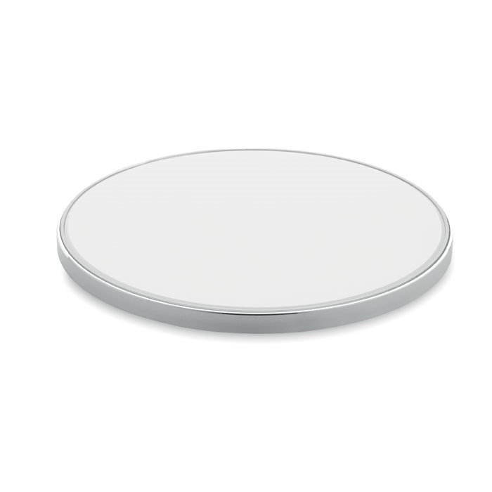 Induktive Ladestation 10W aus Aluminium mit Glas-Oberfläche. Verbinden Sie das Gerät mit Ihrem Computer, legen Sie das Smartphone darauf ab und laden Sie es auf. Blaue Ladeanzeige. Ausgang: DC 9V/1.1A.