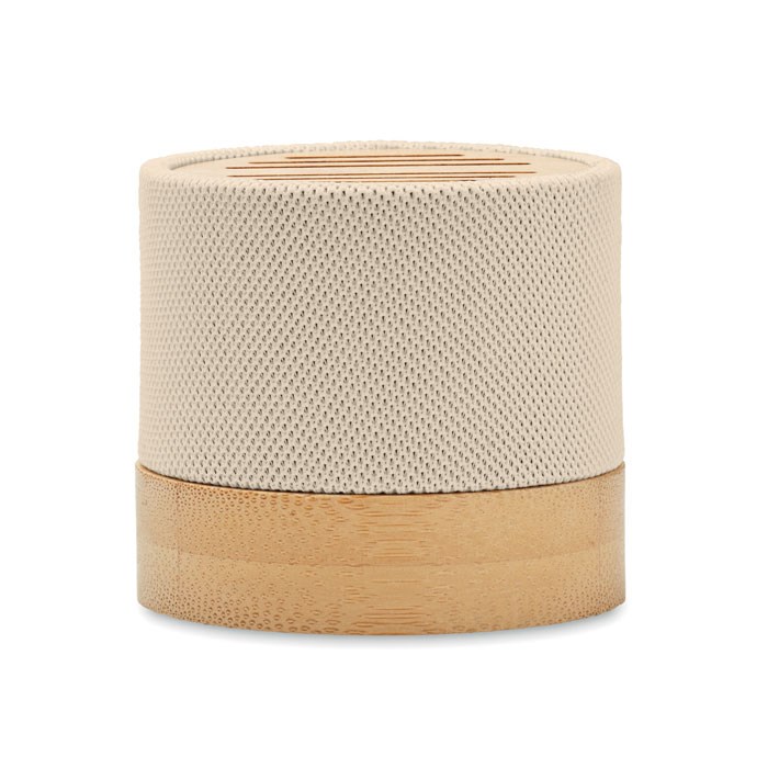 5.0 wireless Lautsprecher in RPET-Gehäuse mit Bambus. Mit LED- Lichtanzeige sowie SD-Kartenslot und AUX-/USB-Kabel. Freisprechfunktion. Inkl. 1 wiederaufladbarer Li-ION-Akku mit 300 mAh. Ausgangsdaten: 3 W, 3 Ohm und 5 V. Spielzeit ca. 3h. Bambus ist ein natürliches Produkt, es kann daher zu leichten Abweichungen in Farbe, Dekor und Maßen kommen.