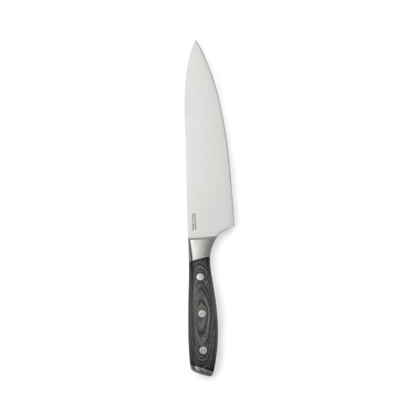 Exklusives Kochmesser aus der Kaiser Serie. Die Entwicklung dieser Messerserie hat mehrere Jahre gedauert. Der X50CrMoV15 Stahl ist sorgfältig aus Deutschland ausgewählt, der Griff ist aus Pakkaholz. Der Griff ist leicht zu greifen, was zusammen mit seinem ausgewogenen Körper das Arbeiten komfortabler und einfacher macht. Die guten Eigenschaften des deutschen Stahls führen dazu, dass die Klingen schmutzabweisend sind und keinen höheren Wartungsaufwand als Schleifen erfordern. Seine Schärfe hält lange an und wenn Sie es schleifen müssen, ist es eine einfache Aufgabe.