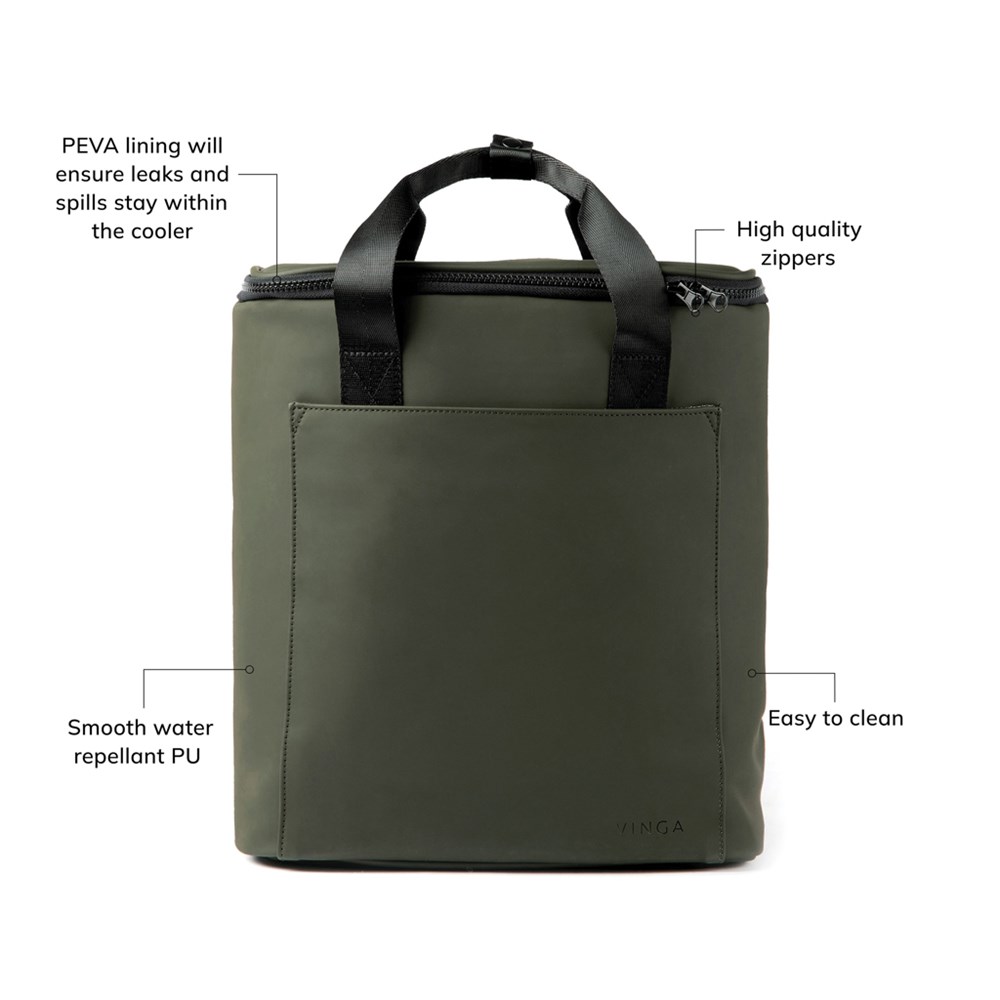 Minimalistischer Kühlrucksack aus wasserabweisendem Nubuk-PU. Der Kühlrucksack ist mit extra dickem Schaumstoff isoliert, und das Innenfutter der Tasche besteht aus PEVA-Material, das sich einfach reinigen und sauber halten lässt. Eine Tasche, die für den Strand, das Boot oder einen Ausflug in die Natur gleichermaßen gut geeignet ist.