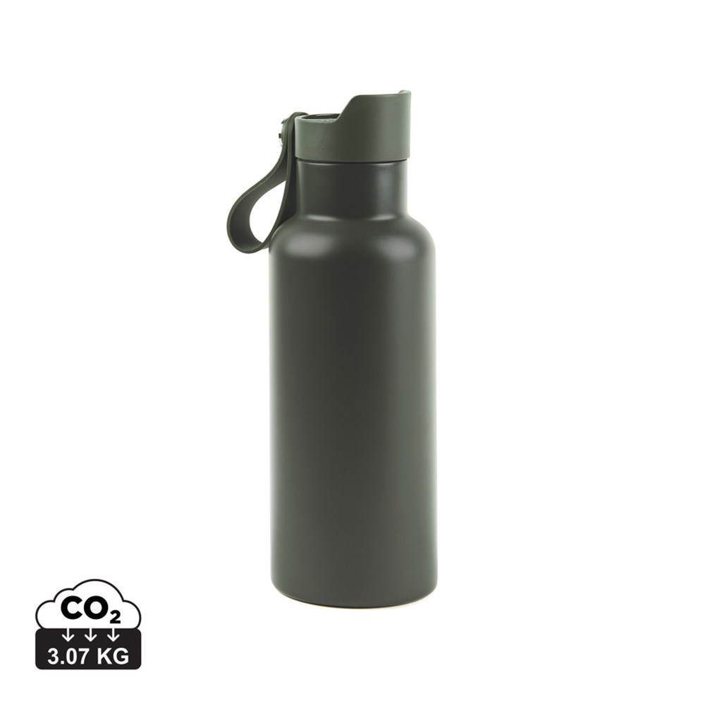 Praktische und stilvolle Wasserflasche mit einer soliden Doppelwand. Vakuumisoliert, um Getränke bis zu 6h lang heiß oder 12h kalt zu halten. Genießen Sie Ihr Lieblingskaltgetränk auf Reisen oder nehmen Sie morgens auf dem Weg zur Arbeit eine wärmende Tasse Tee oder Kaffee mit. Knopfdruck-Funktion. 500 ml.