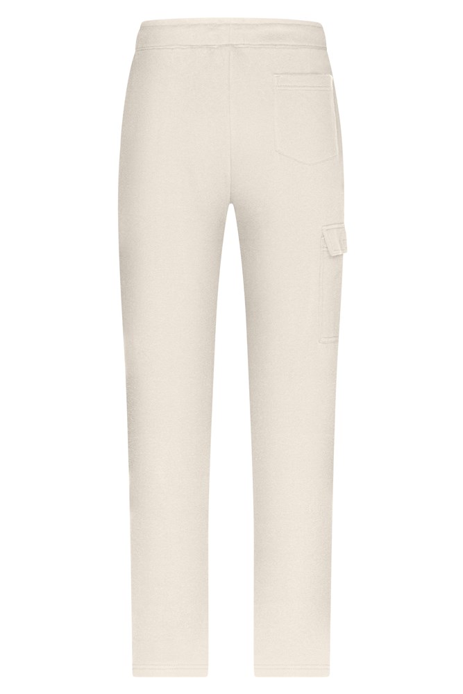 Hochwertige French-Terry Qualität 85% gekämmte, ringgesponnene BIO-Baumwolle Angeschnittener, elastischer Bund mit Kordel 2 seitliche Eingrifftaschen, eine Gesäßtasche 1 Cargotasche mit Klettverschluss auf rechtem Bein Seitenlänge mit Bund (Hose): 106 cm 1/2 Bundweite: 41 cm 1/2 Hüftweite: 53 cm OEKO-TEX® Standard 100 (15.0.70467) OCS Standard blended RCS blended Tear off!® Label