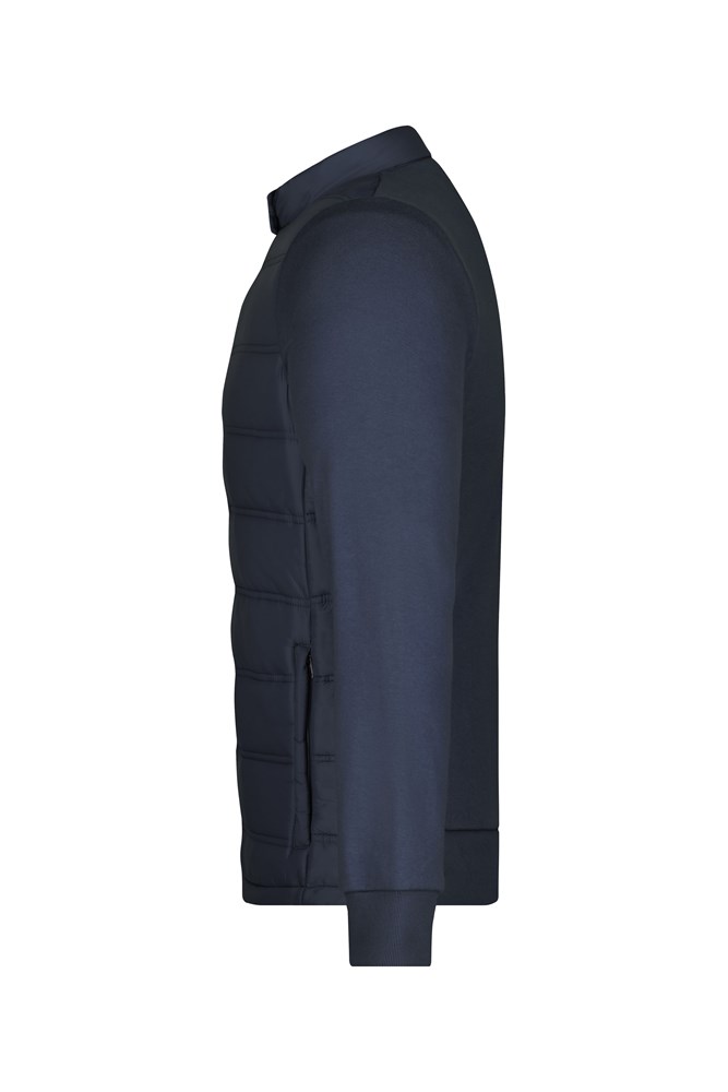 Rückenteil und Ärmel aus hochwertiger French-Terry-Qualität Innenseite nicht angeraut Leicht wattiertes und gestepptes Vorderteil 2 seitliche Taschen mit Reißverschluss, 2 Innentaschen JN1123: taillierter Schnitt 1/2 Oberweite: 52 cm 1/2 Saumweite: 51 cm Länge ab Schulter: 66 cm Ärmel Länge: 66 cm OEKO-TEX® Standard 100 (15.0.70467) Stepp