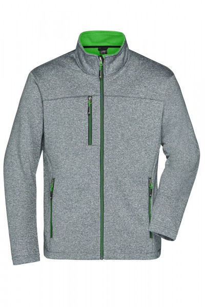 Angenehmes, weiches 2-Lagen Softshellmaterial Fleece-Innenseite in Kontrastfarbe Durchgehend hinterlegter Frontreißverschluss mit Kinnschutz Stehkragen 2 seitliche Taschen und eine Brusttasche mit Reißverschluss JN1147: leicht tailliert 1/2 Oberweite: 53 cm Länge ab Schulter Vorderteil: 68 cm Länge ab Schulter Rückenteil: 71 cm Ärmel Länge: 66 cm OEKO-TEX® Standard 100 (15.0.70467) Softshell 2-lagig bonded Brusttasche Stehkragen
