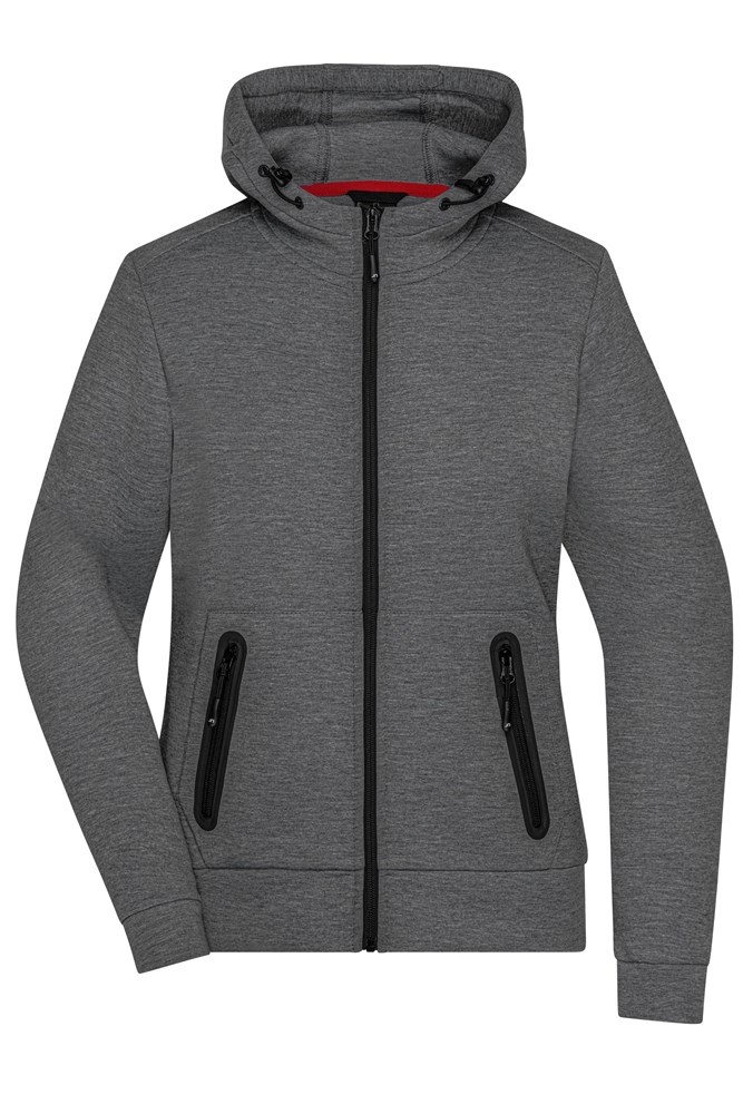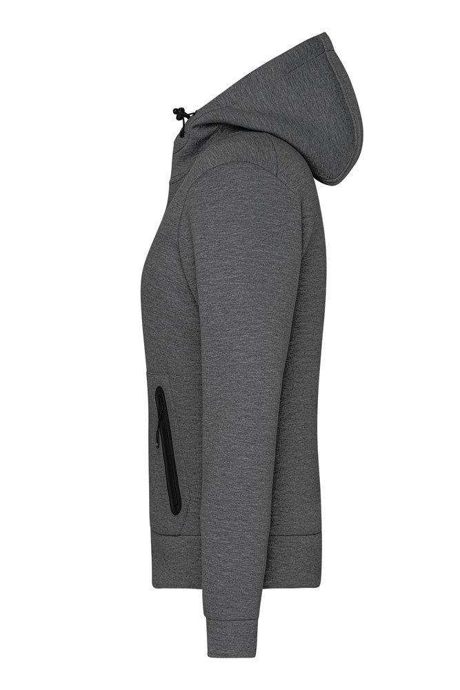 Elastische, angenehme Interlock-Qualität Angeschnittene Kapuze mit Weitenregulierung Aufgesetzte Kängurutasche mit Reißverschluss Reißverschlüsse: YKK Lässiger Schnitt JN1143: leicht tailliert 1/2 Oberweite: 46 cm 1/2 Taillenweite: 41 cm Länge ab Schulter: 61 cm Ärmel Länge: 61 cm OEKO-TEX® Standard 100 (15.0.70467) Kapuze YKK - Reißverschluss