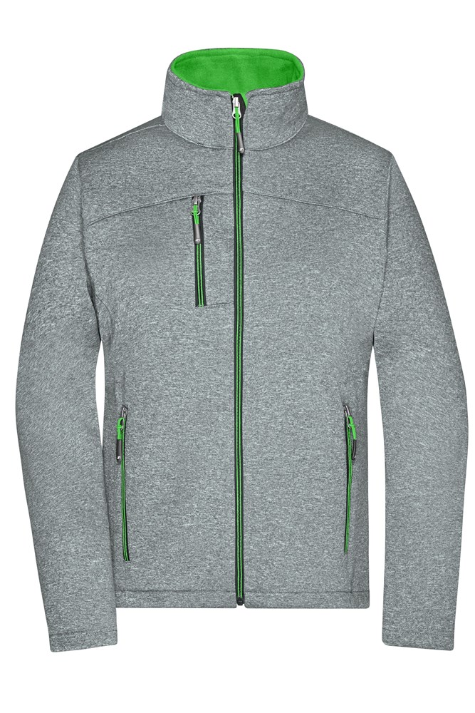 Angenehmes, weiches 2-Lagen Softshellmaterial Fleece-Innenseite in Kontrastfarbe Durchgehend hinterlegter Frontreißverschluss mit Kinnschutz Stehkragen 2 seitliche Taschen und eine Brusttasche mit Reißverschluss JN1147: leicht tailliert 1/2 Oberweite: 47 cm 1/2 Taillenweite: 42 cm 1/2 Saumweite: 49 cm Länge ab Schulter Vorderteil: 61 cm Länge ab Schulter Rückenteil: 63 cm Ärmel Länge: 60 cm OEKO-TEX® Standard 100 (15.0.70467) Softshell 2-lagig bonded Brusttasche Stehkragen