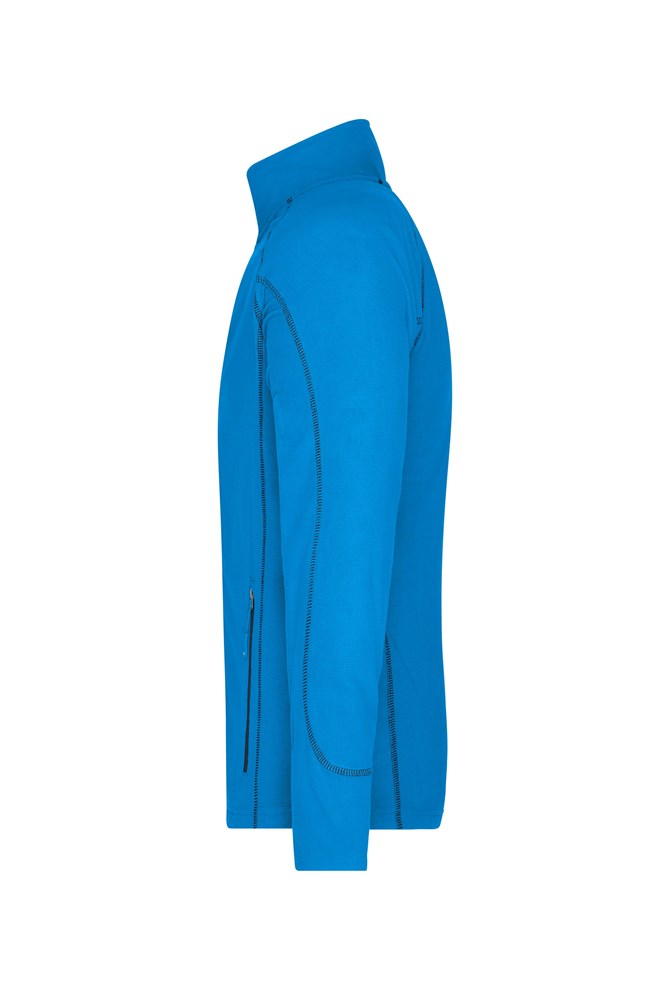 Angenehm weiche Qualität Leicht strukturierte Außenseite, innen glatt Stehkragen Durchgehend unterlegter Reißverschluss mit Kinnschutz Kontrastfarbige Flatlocknähte 2 seitliche Taschen mit Reißverschluss JN596: Taillierter Schnitt 1/2 Oberweite: 52 cm 1/2 Saumweite: 51 cm Länge ab Schulter Vorderteil: 69 cm Länge ab Schulter Rückenteil: 73 cm Ärmel Länge inkl. Schulter: 79 cm OEKO-TEX® Standard 100 (15.0.70467) Raglan
