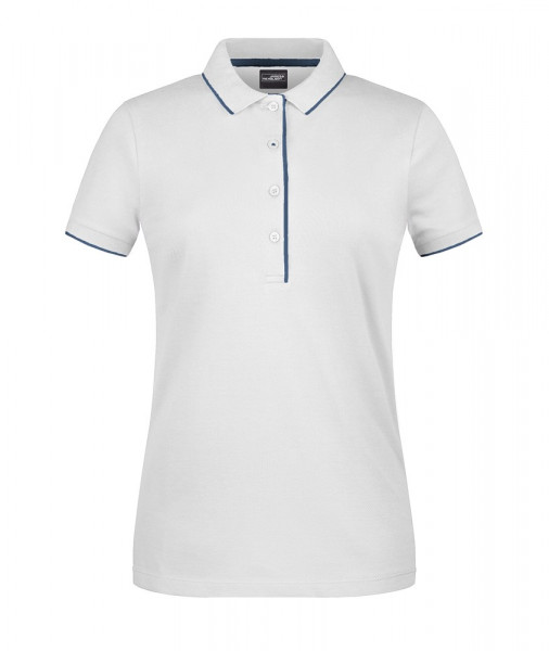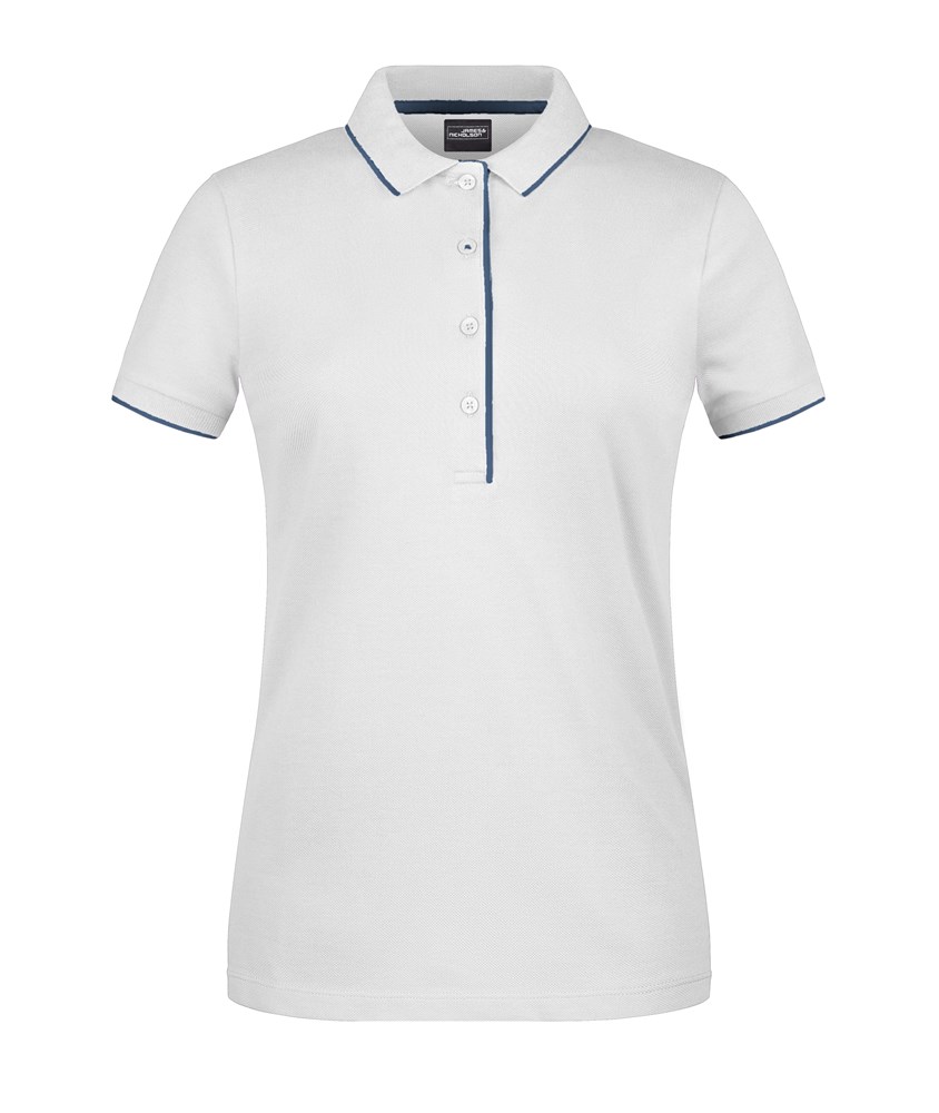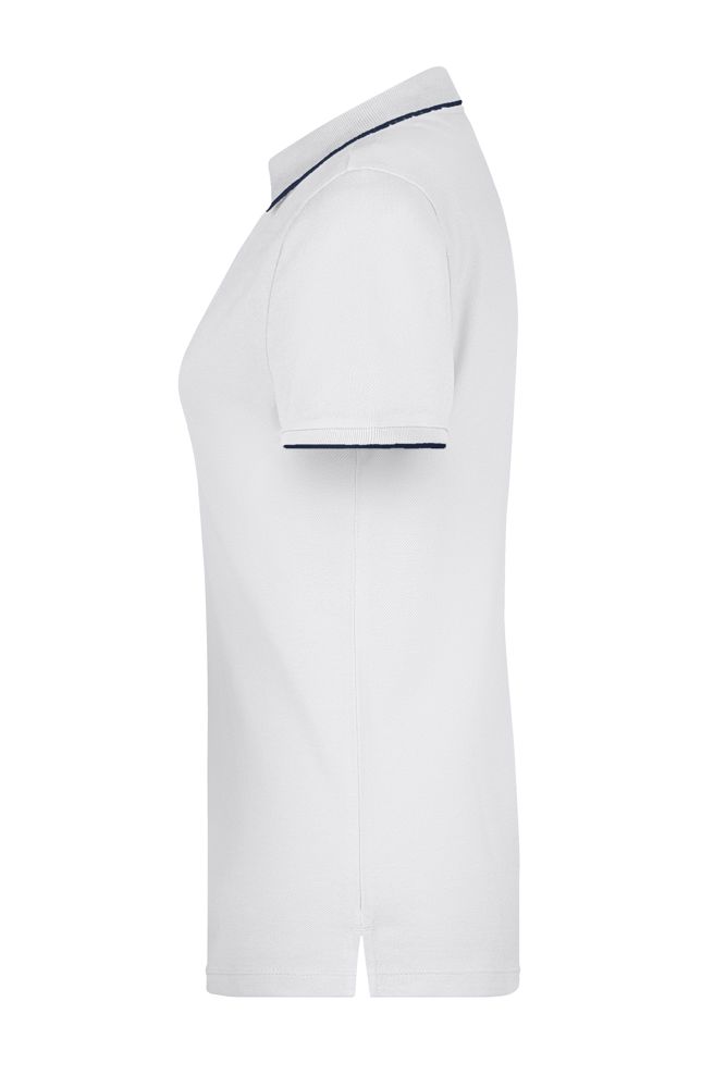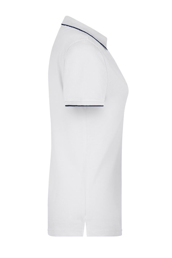 Hochwertige Piqué-Qualität Gekämmte, ringgesponnene Baumwolle Gestrickter Polokragen und Armbündchen mit Kontraststreifen Knopfleiste innen in Kontrastfarbe Knöpfe Ton in Ton Seitenschlitze JN727: taillierter Schnitt, 4 Knöpfe JN728: 3 Knöpfe 1/2 Oberweite: 44 cm Länge ab Schulter: 61 cm Ärmel Länge: 17 cm OEKO-TEX® Standard 100 (15.0.70467) Baumwolle