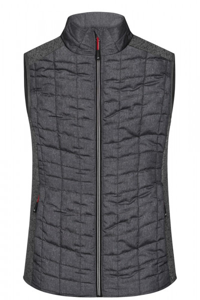 Weiches, wärmendes, pflegeleichtes Material in Melange-Optik Vorder-, Rückenteil und Kragen in gestepptem Karodesign Durchgehend hinterlegter Reißverschluss 2 seitliche Taschen mit Reißverschluss 2 Innentaschen JN739: taillierter Schnitt 1/2 Oberweite: 45 cm 1/2 Saumweite: 46 cm Länge ab Schulter: 63 cm OEKO-TEX® Standard 100 (15.0.70467) Stepp Strickfleece Stehkragen