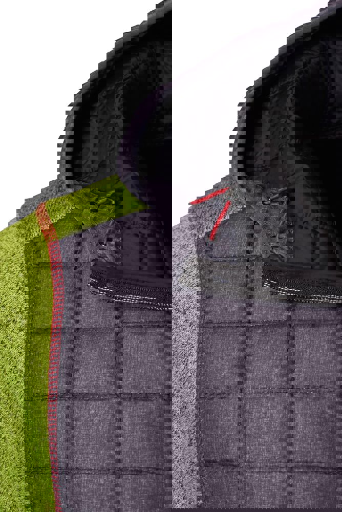 Weiches, wärmendes, pflegeleichtes Material in Melange-Optik Vorder-, Rückenteil und Kapuze in gestepptem Karodesign Kontrastfarbige Flatlocknähte am Ärmel Kapuze mit innenliegender Weitenregulierung Durchgehend hinterlegter Reißverschluss 2 seitliche Taschen mit Reißverschluss, 2 Innentaschen JN771: taillierter Schnitt 1/2 Oberweite: 53 cm Länge ab Schulter: 68 cm Ärmel Länge: 67 cm OEKO-TEX® Standard 100 (15.0.70467) Kapuze