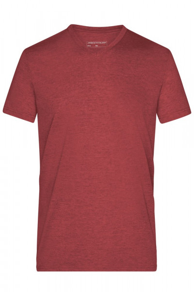 Hochwertige Melange Single Jersey Qualität Lässige, komfortable Schnittform V-Ausschnitt mit Elasthan JN973: taillierter Schnitt 1/2 Oberweite: 48 cm 1/2 Taillenweite: 47 cm 1/2 Saumweite: 47 cm Länge ab Schulter: 72 cm Ärmel Länge: 20 cm Baumwolle V-Ausschnitt Sublimations-Textilien