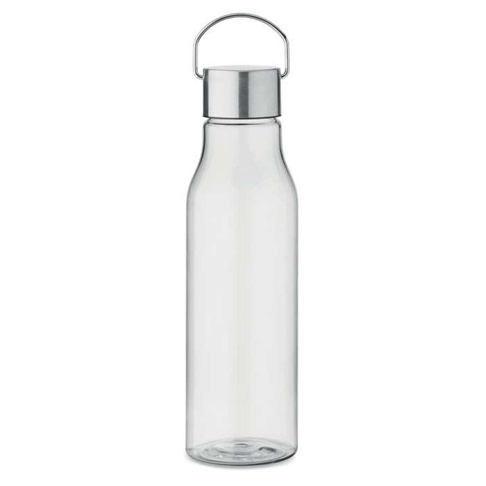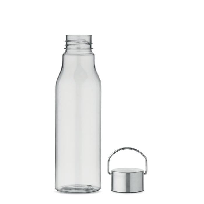 Trinkflasche aus BPA-freiem RPET. Verschluss aus Edelstahl mit Henkel. Auslaufsicher. Füllmenge: 600 ml.
