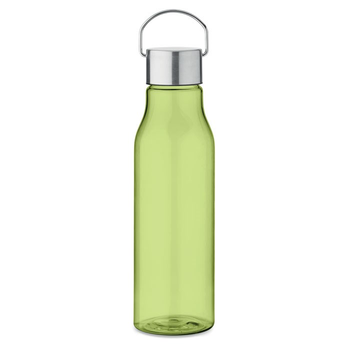 Trinkflasche aus BPA-freiem RPET. Verschluss aus Edelstahl mit Henkel. Auslaufsicher. Füllmenge: 600 ml.