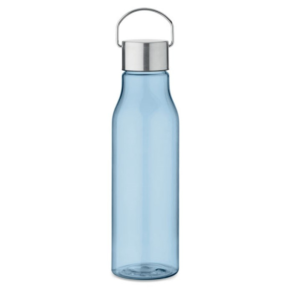 Trinkflasche aus BPA-freiem RPET. Verschluss aus Edelstahl mit Henkel. Auslaufsicher. Füllmenge: 600 ml.