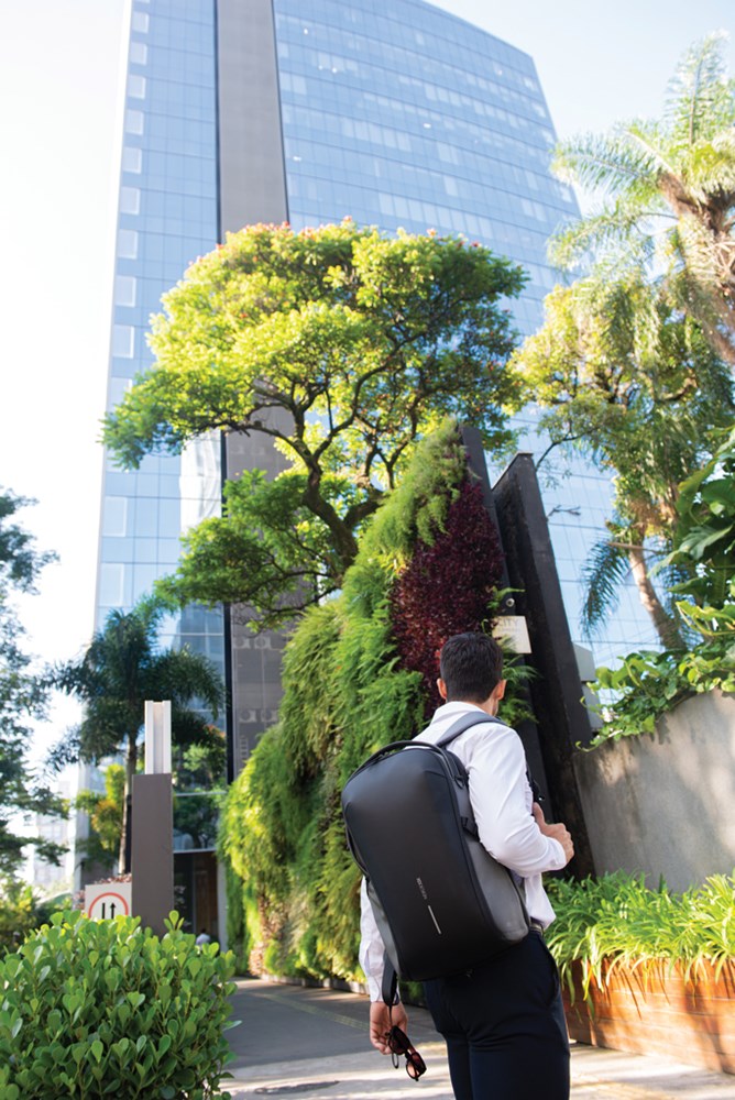 Der Bizz Rucksack ist perfekt für den täglichen Gebrauch und kurze Reisen. Der Rucksack verfügt über ein um 180 Grad zu öffnendes Hauptfach mit erweiterbarem Bereich, Netztaschen im Inneren, eine integrierte Tasche für technische Geräte und eine abnehmbare Schlüsselhalterung. Das hintere Fach ist mit einem wasserdichten Reißverschluss geschützt und verfügt über ein gepolstertes Fach für ein bis zu 16" großes Laptop oder MacBook. Es gibt eine Fülle von leicht zugänglichen Außentaschen, darunter eine große Trinkflaschentasche mit Magnetverschluss. Der Rucksack ist wasserabweisend und wird aus recycelten Materialien hergestellt. Mit AWARE™-Tracer, der die tatsächliche Verwendung von recycelten Materialien bestätigt. 27% recycelter Inhalt. Registered Design®