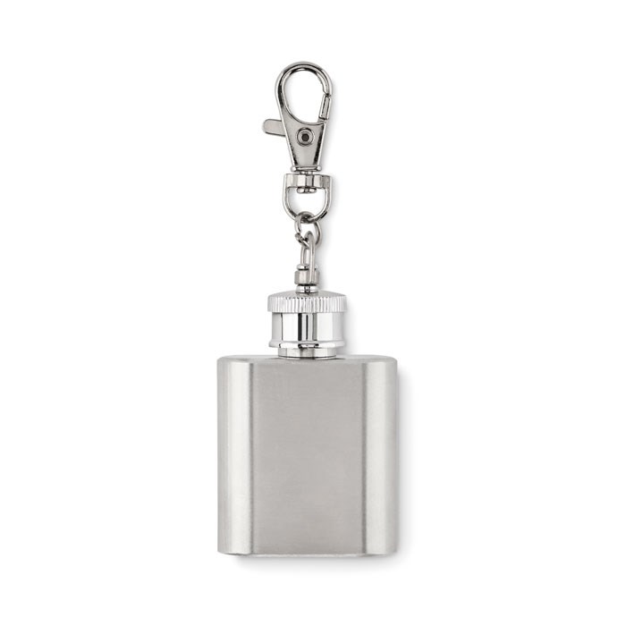 Schlüsselring mit kleinem Flachmann. Edelstahl. Füllmenge 28 ml.