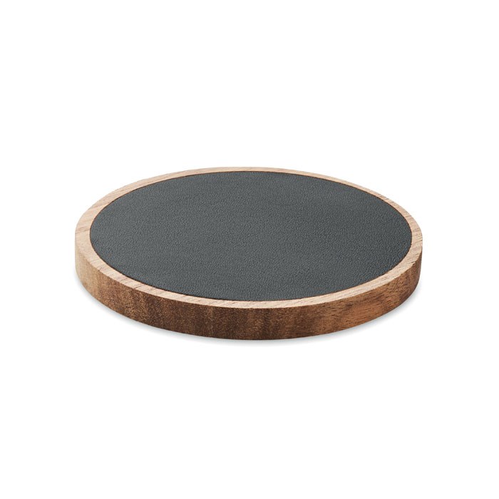 Kabellose Ladestation. Gehäuse aus Akazienholz und recyceltem PU. Verbinden Sie das Gerät mit dem Computer und laden Sie Ihr Smartphone durch einfaches Auflegen auf. Ausgang: DC 9V/1.67A (15W).