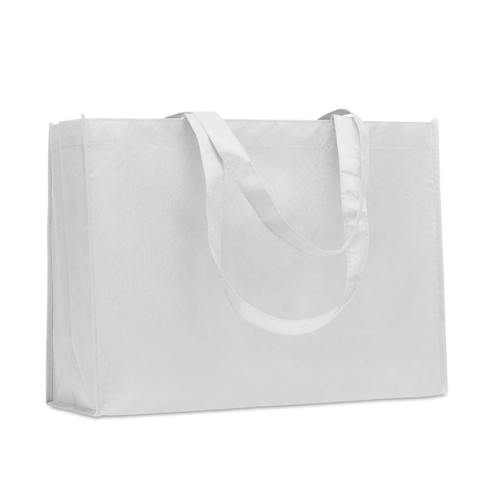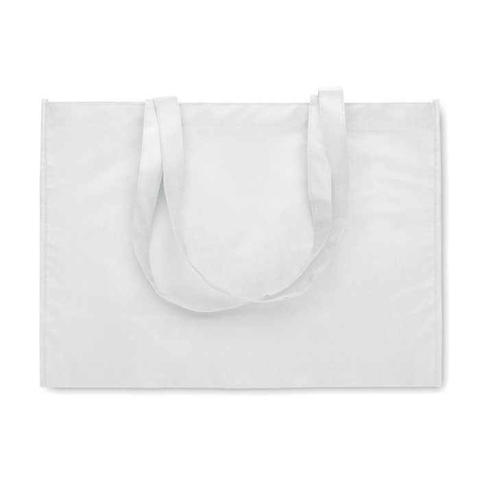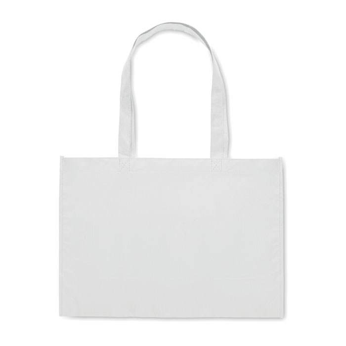 Einkaufs- oder Strandtasche aus RPET-Non Woven mit Seitenfalz und langen Tragegriffen. 80 g/m².