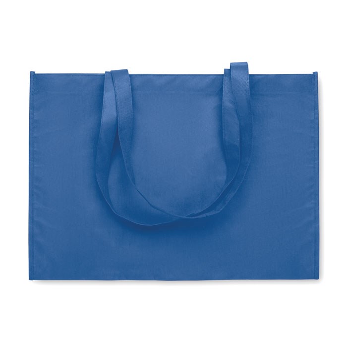 Einkaufs- oder Strandtasche aus RPET-Non Woven mit Seitenfalz und langen Tragegriffen. 80 g/m².