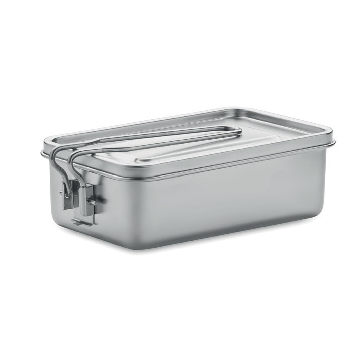 Lunchbox aus Edelstahl. Abnehmbarer Verschlussgriff. Füllmenge: 750 ml.