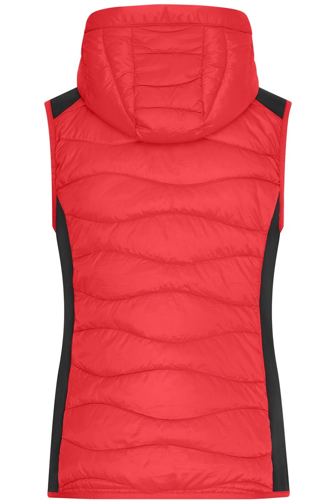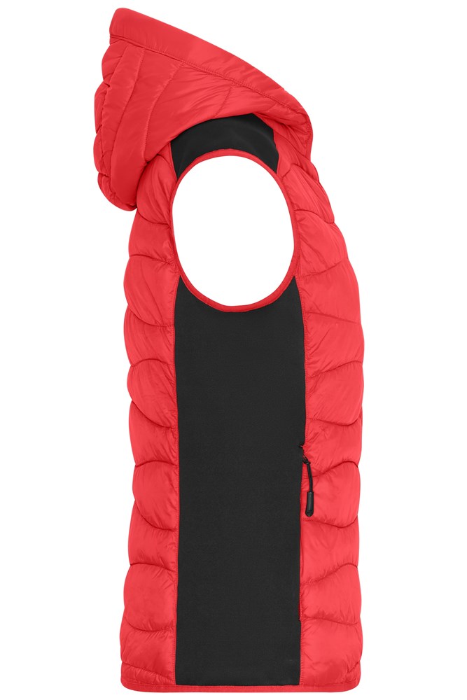 Pflegeleichter Stretchfleece kombiniert mit gesteppten Einsätzen im Vorder- und Rückenteil und Kapuze