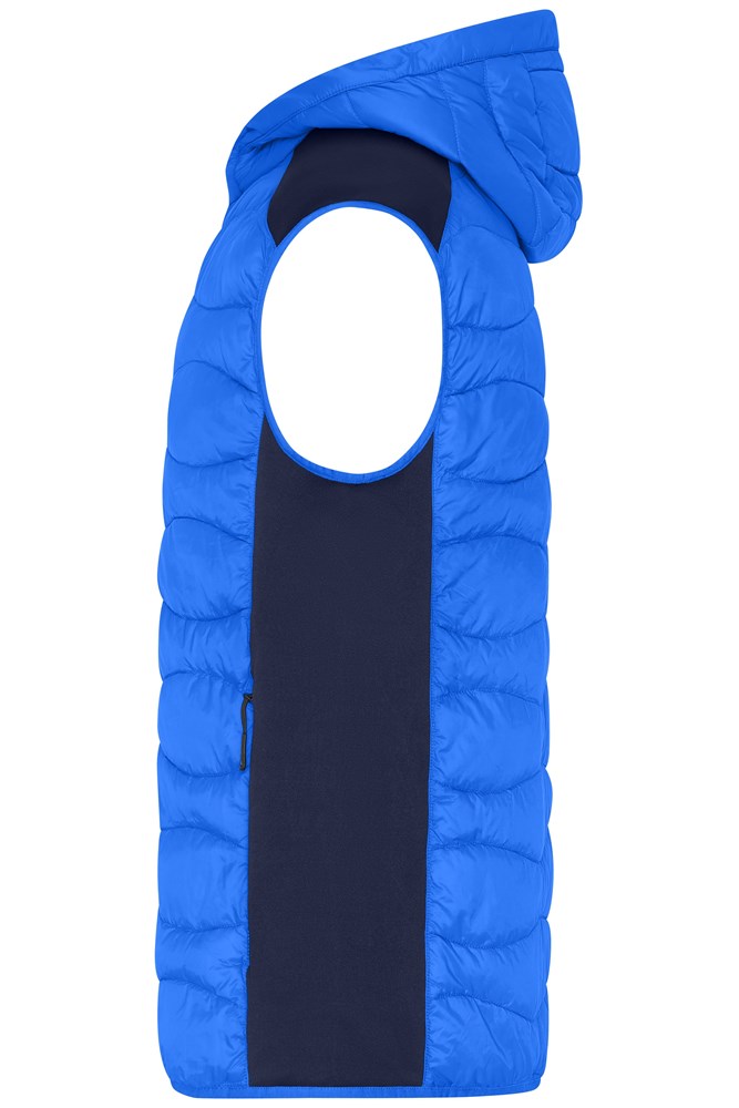 Pflegeleichter Stretchfleece kombiniert mit gesteppten Einsätzen im Vorder- und Rückenteil und Kapuze