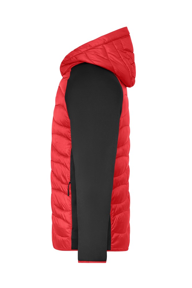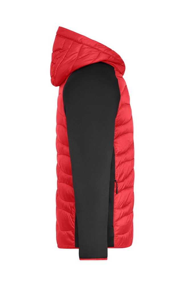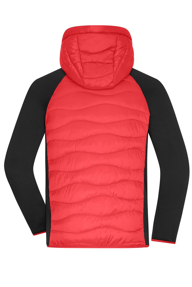 Pflegeleichter Stretchfleece kombiniert mit gesteppten Einsätzen im Vorder- und Rückenteil und Kapuze
