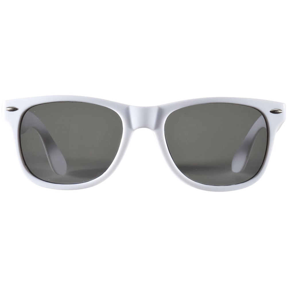 Diese Sonnenbrille im Retro-Design ist das ideale Werbegeschenk für Sommerfestivals, Veranstaltungen oder andere sonnige Outdoor-Aktivitäten. Die Brille entspricht der Norm EN ISO 12312-1, hat UV400-Gläser der Kategorie 3 und ist damit die perfekte Wahl für den Schutz vor hellem Sonnenlicht. Dank des PC-Kunststoffmaterials ist die Sonnenbrille leicht und angenehm zu tragen.