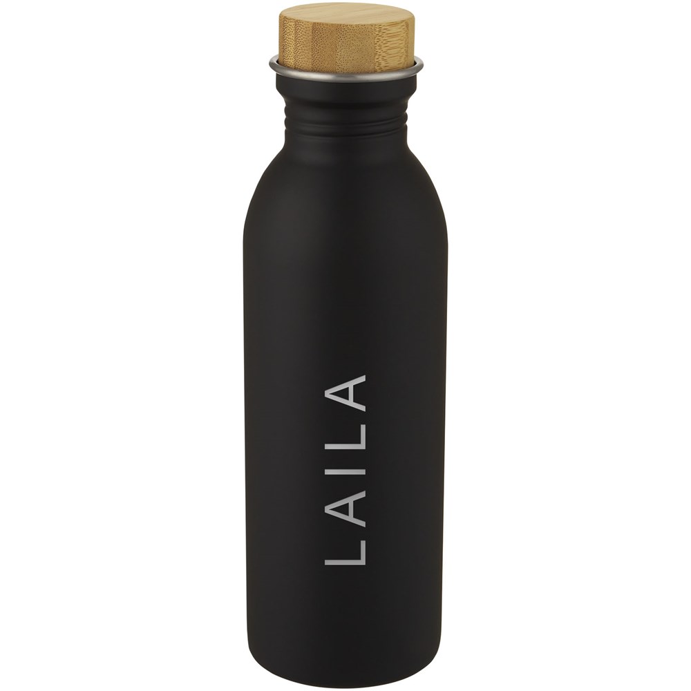 Einwandige Sportflasche aus 18/8-Edelstahl mit einem Deckel aus Bambus. BPA-frei, geprüft und zugelassen nach dem deutschen Lebensmittelrecht (LFGB). Auf Phthalate geprüft und zugelassen gemäß den REACH-Vorschriften. Der verwendete Bambus stammt aus nachhaltigen, umweltfreundlichen und sozialverträglichen Quellen. Das Fassungsvermögen beträgt 650 ml. Handwäsche empfohlen. Verpackt in einer Geschenkbox aus Recyclingkarton.