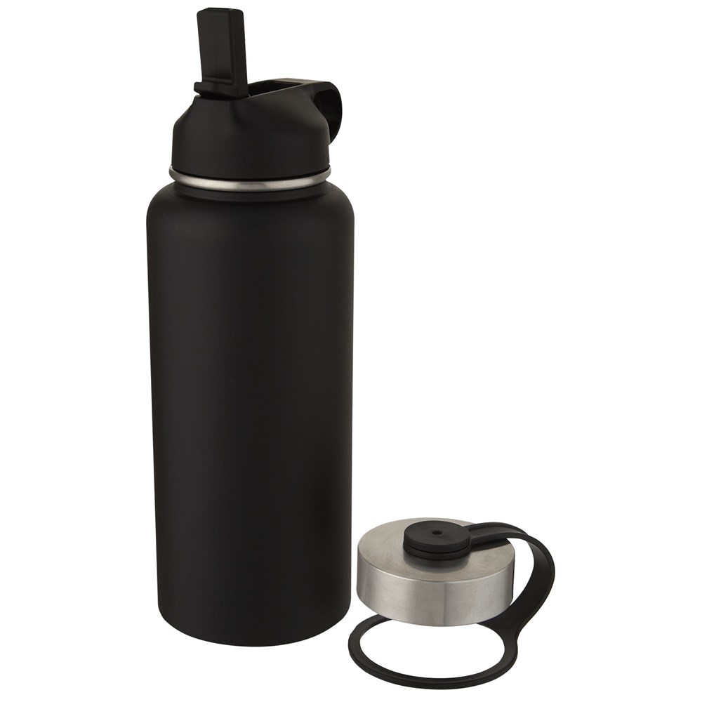 Zwei-in-Eins-Sportflasche aus doppelwandigem Edelstahl mit Kupfer-Vakuum-Isolierung und 2 Deckeln: ein Deckel mit Strohhalm für leichtes Trinken und ein auslaufsicherer Schraubdeckel mit Handschlaufe. Die isolierte Konstruktion aus 18/8-Edelstahl verhindert die Bildung von Kondenswasser an der Außenseite der Flasche, und die trendige Pulverbeschichtung macht sie besonders robust. Große Öffnung für einfaches Befüllen, Ausgießen und Reinigen. BPA-frei, geprüft und zugelassen nach dem deutschen Lebensmittelrecht (LFGB). Auf Phthalate geprüft und zugelassen gemäß den REACH-Vorschriften. Perfekt für Eiswürfel. Das Volumen beträgt 1 Liter. Handwäsche empfohlen. Verpackt in einer Geschenkbox aus Recyclingkarton.