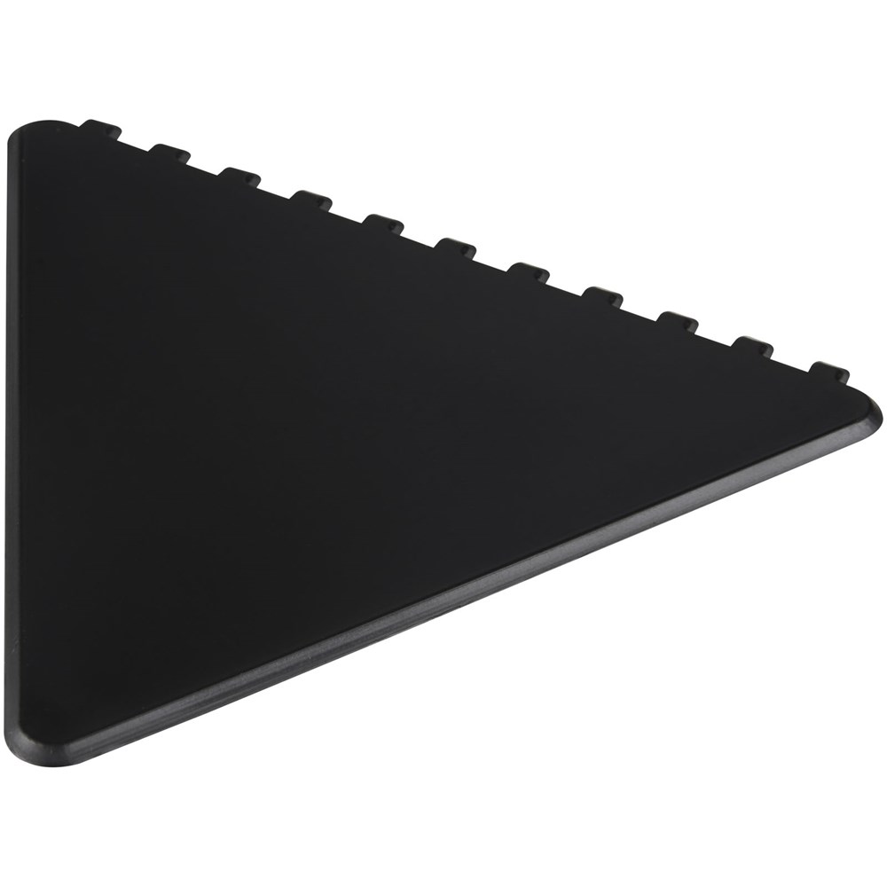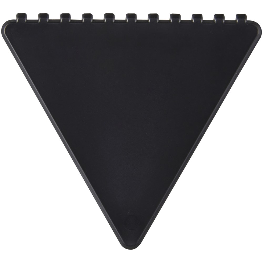 Dreieckiger Eiskratzer um die Windschutzscheibe von Eis und Schnee zu befreien mit einer großen Werbeanbringungssfläche. Jede der 3 Seiten kann zum Eiskratzen verwendet werden. Hergestellt in Großbritannien aus recyceltem Kunststoff. Der Eiskratzer hat aufgrund der Beschaffenheit des recycelten Materials eine gesprenkelte Oberfläche.
