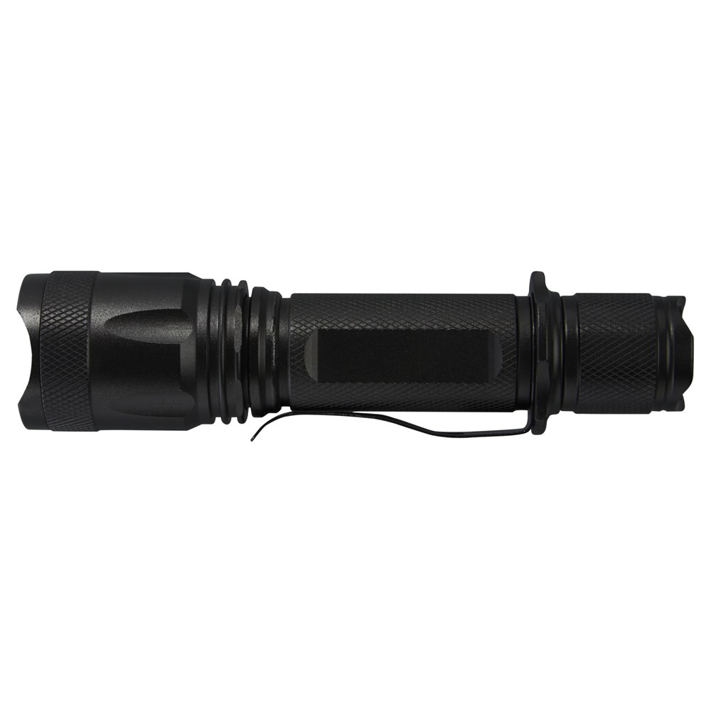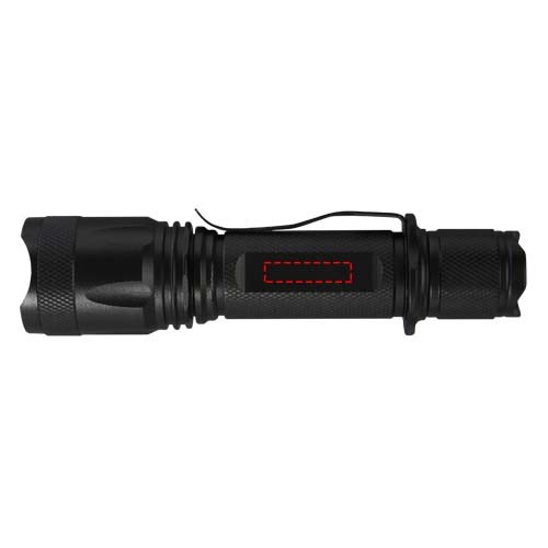 Mit dieser wiederaufladbaren taktischen Aluminiumtaschenlampe mit hoher Leistung geht die Batterie nie zur Neige. Das solide Gehäuse aus schwarzer Aluminiumlegierung bietet einen taktischen Look und eine Stoßfestigkeit von 1 Meter. Die Taschenlampe verfügt über einen Gürtelclip zum einfachen Tragen und ist spritzwassergeschützt nach IPX4. Die 5W LED erzeugt 300 Lumen für bis zu 3 Stunden und hat eine Reichweite von 200 Metern mit 5 verschiedenen Lichtmodi: hoch, mittel, niedrig, stroboskopisch und SOS. Die hohe Leistung kommt von einem eingebauten Lithium Akku mit einer Kapazität von 2000 mAh. Die Taschenlampe hat eine Größe von 14,5 x 3,4 cm und wiegt nur 170 Gramm. Wird mit einer Bedienungsanleitung geliefert und ist in einer Geschenkbox aus Recyclingkarton mit einer Größe von 17,5 x 6 x 4 cm verpackt. Eine Lasergravur auf dem Aluminiumgehäuse wird empfohlen.