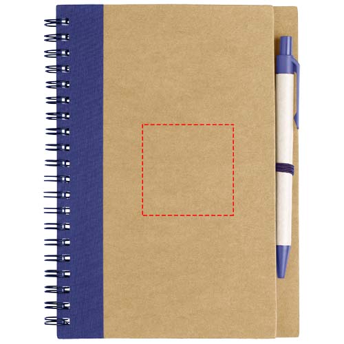 Notizbuch mit Deckel aus Recyclingkarton, 60 Blatt liniertem Recyclingpapier und passendem Stift. Das Notizbuch und der Stift sind zusammen verpackt.