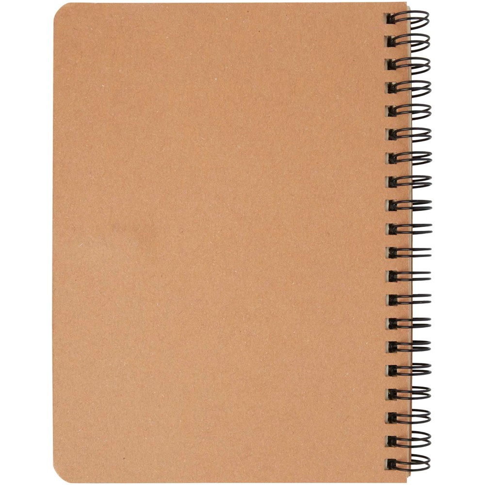 Notizbuch mit Deckel aus Recyclingkarton, 60 Blatt liniertem Recyclingpapier und passendem Stift. Das Notizbuch und der Stift sind zusammen verpackt.