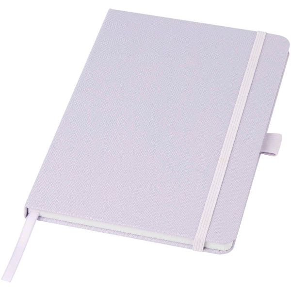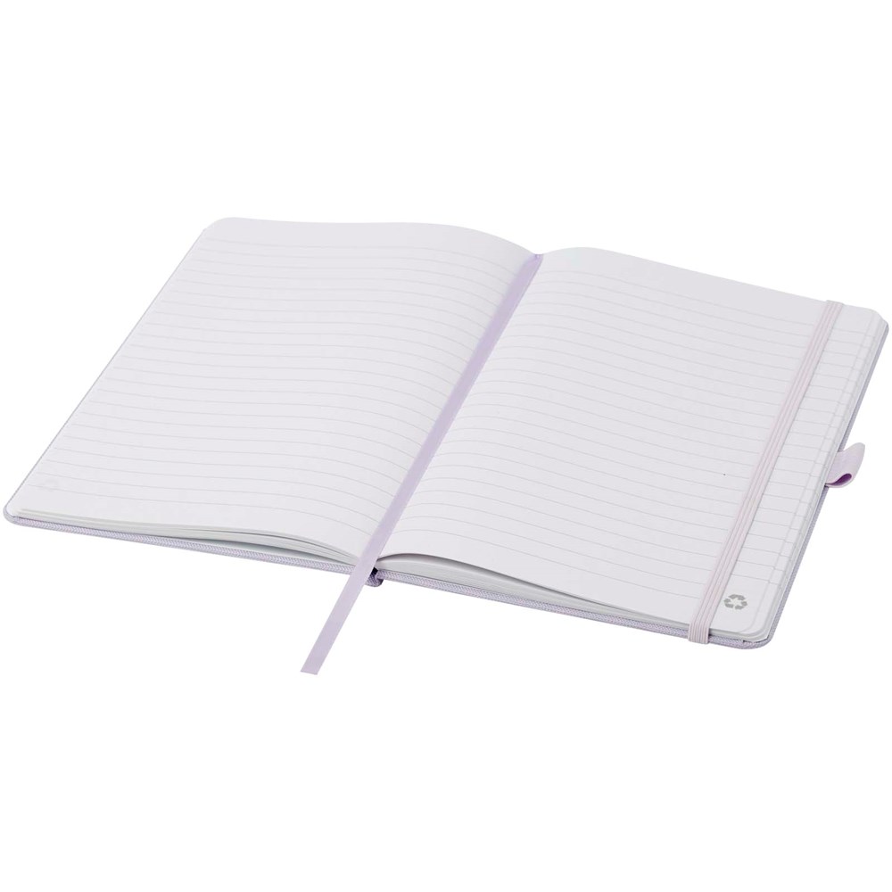 A5 Notizbuch mit einem Cover aus RPET. Mit 80 Blatt, 70 g/m² recyceltem Papier, liniert, und mit Stiftschlaufe und Leseband.