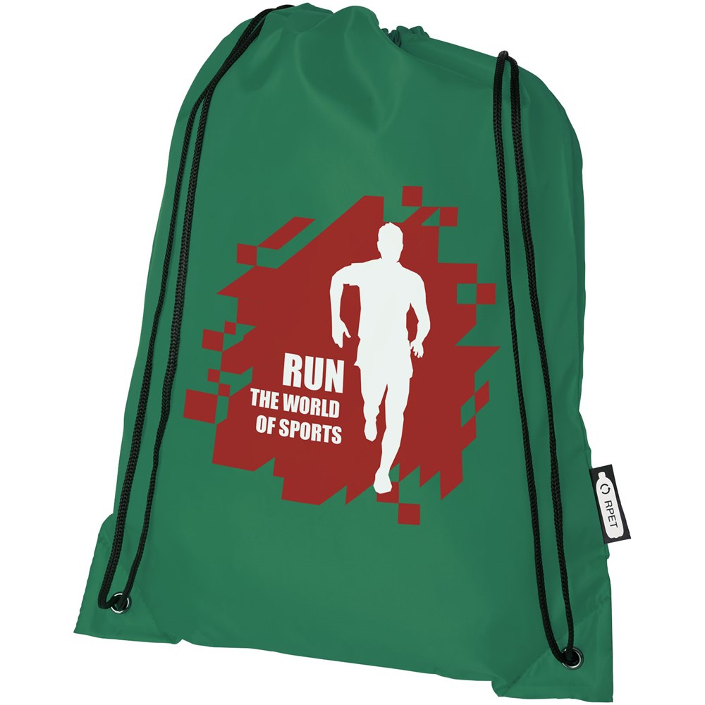 Langlebiger Sportbeutel aus 100 % recyceltem Kunststoff, der zur Reduzierung von Kunststoffabfällen beiträgt. Jede Tasche wird aus 3,5 recycelten PET Flaschen hergestellt. Großes Hauptfach mit Schnürverschluss in schwarzer Farbe. Kapazität: 5 Liter, Beständigkeit bis zu 5 kg Gewicht.