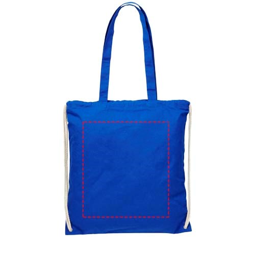 Multifunktionaler Baumwolltsportbeutel mit langen Griffen und Kordelzug, der als Tasche oder Rucksack getragen werden kann. Großes Hauptfach mit Kordelzugverschluss. Mit zwei herunterklappbaren Griffen von 31 cm Länge. Kapazität: 6 l, für bis zu 5 kg Gewicht.