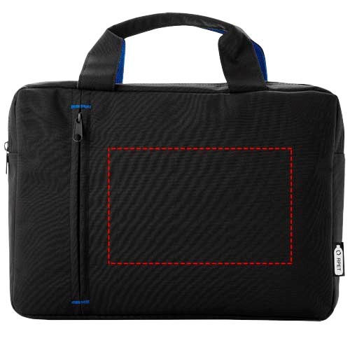 Konferenztasche aus recyceltem PET Kunststoff mit einem Hauptfach mit Reißverschluss und einer Reißverschlusstasche auf der Vorderseite, mit verstärkten Tragegriffen an der Oberseite und trendigen farblichen Kontrastelementen.