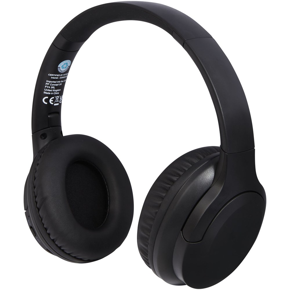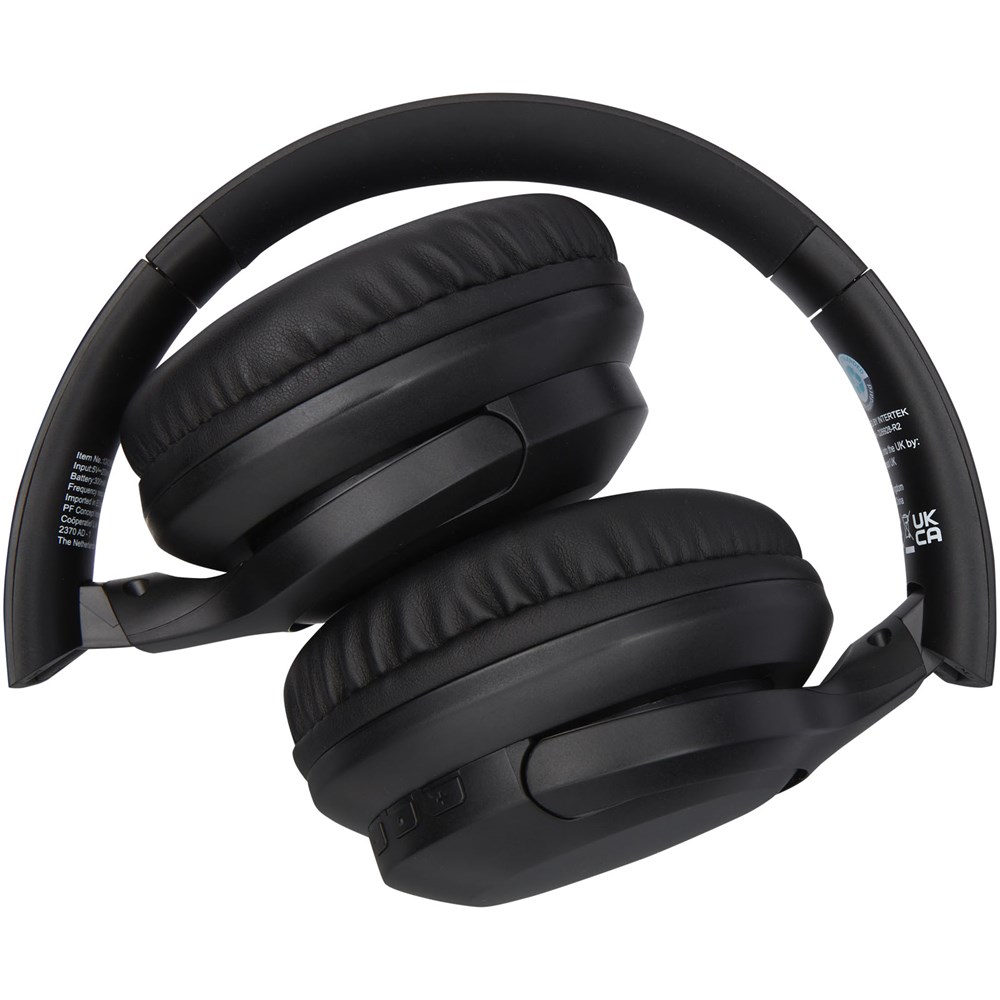 Kabelloser Kopfhörer aus recyceltem Kunststoff. Der Kopfhörer verfügt über ein Mikrofon, um Anrufe entgegenzunehmen. Das Over-Ear-Design der Ohrmuscheln sorgt für ein fantastisches Klangerlebnis. Bluetooth® 5.2-Verbindung mit einer Reichweite von bis zu 10 Meter. Ergonomisches Design mit Schaum-Ohrmuscheln für hohen Tragekomfort. Die Ohrmuscheln können hochgeklappt und gedreht werden. Der eingebaute wiederaufladbare 300-mAh-Akku bietet bis zu 12 Stunden Wiedergabezeit bei maximaler Lautstärke. Auslieferung in einer Geschenkbox inklusive Bedienungsanleitung (beides aus nachhaltigen Materialien).