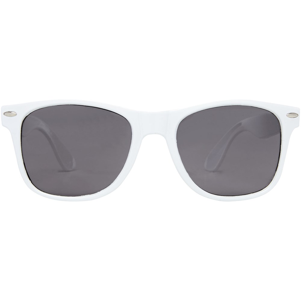 Diese nachhaltige Sonnenbrille im Retro-Design ist der ideale Werbeartikel für Sommerfestivals, Veranstaltungen oder andere sonnige Aktivitäten im Freien. Dank des recycelten PET-Kunststoffs ist die Sonnenbrille leicht und angenehm zu tragen. Diese Brille entspricht der Norm EN ISO 12312-1, hat UV400-Gläser der Kategorie 3 und ist somit die perfekte Wahl für den Schutz vor hellem Sonnenlicht.