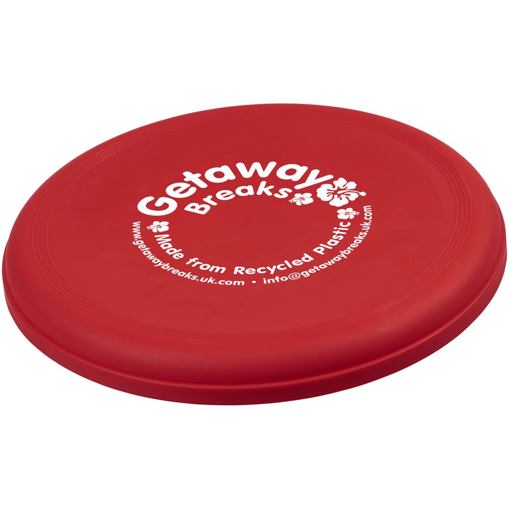 Frisbee aus 100 % recyceltem Kunststoff, der eine witzige Werbeidee mit nachhaltigem Engagement verbindet. Hergestellt in UK und konform mit EN72. Die Frisbee kann aufgrund der Beschaffenheit des recycelten Materials eine gesprenkelte Oberfläche aufweisen. Nicht für Kinder unter drei Jahren geeignet. Durchmesser: 23 cm.