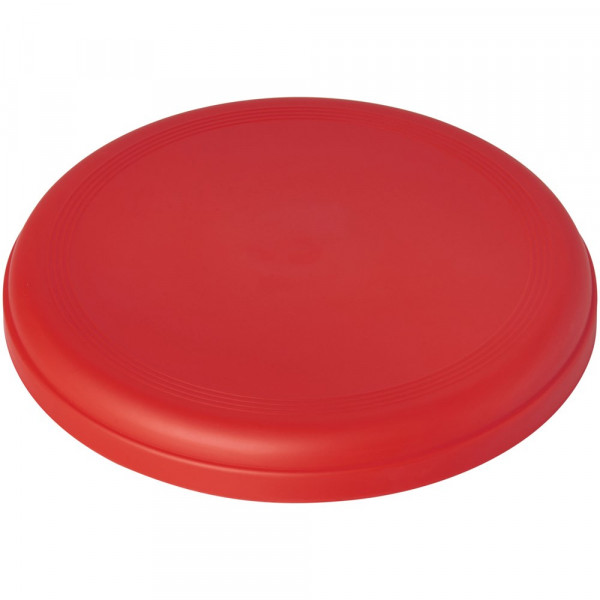 Stabiler Frisbee aus recyceltem post-consuper Kunststoff. Das Material hat aufgrund der Beschaffenheit des recycelten Materials eine gesprenkelte Oberfläche. EN71-konform. Nicht für Kinder unter drei Jahren geeignet. Durchmesser: 18 cm.