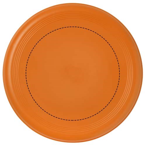 Stabiler Frisbee aus recyceltem post-consuper Kunststoff. Das Material hat aufgrund der Beschaffenheit des recycelten Materials eine gesprenkelte Oberfläche. EN71-konform. Nicht für Kinder unter drei Jahren geeignet. Durchmesser: 18 cm.