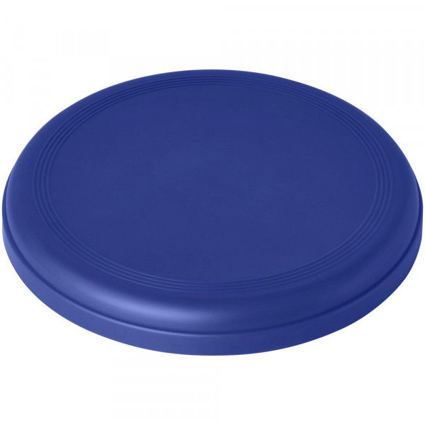 Stabiler Frisbee aus recyceltem post-consuper Kunststoff. Das Material hat aufgrund der Beschaffenheit des recycelten Materials eine gesprenkelte Oberfläche. EN71-konform. Nicht für Kinder unter drei Jahren geeignet. Durchmesser: 18 cm.
