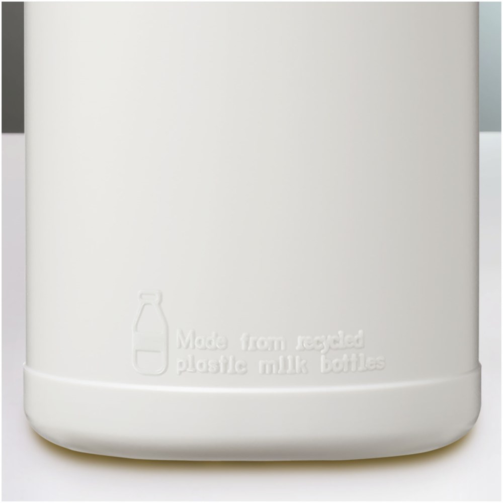 Diese einwandige Sportflasche verwandelt Einweg-Kunststoffmilchflaschen in etwas, das immer wieder verwendet werden kann. Die Flasche hat einen auslaufsicheren Deckel mit Klappverschluss und ein Fassungsvermögen von 500 ml. Aufgrund der Beschaffenheit des recycelten Kunststoffs können die Farbtöne leicht variieren, und es können Farbflecken auftreten. Hergestellt in UK.